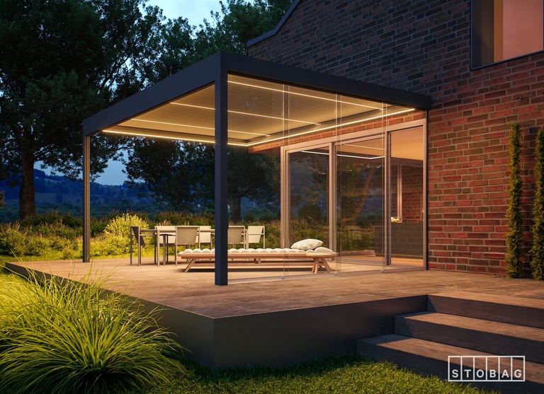 Que ce soit contre la façade de la maison ou comme pavillon dans le jardin, l’éclairage crée une atmosphère très conviviale en soirée. Avec ses possibilités d’ajout d’ombrage latéral ou de vitrage, le BAVONA est le complément parfait pour tout espace extérieur.