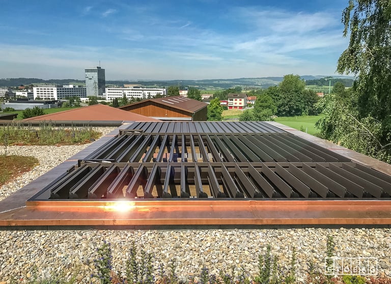 Construction durable et résistante aux intempéries Utilisation toute la journée grâce à la grande capacité de rotation des lamelles Un design intemporel et fin s’adaptant à toutes les architectures Ombrage vertical pour une meilleure protection contre l’éblouissement et plus d’intimité Protection contre le vent et les intempéries, grâce au vitrage latéral Évacuation canalisée de l’eau de pluie par les montants