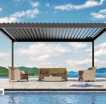 Système modulaire et flexible avec toile ou lamelles (bioclimatique).