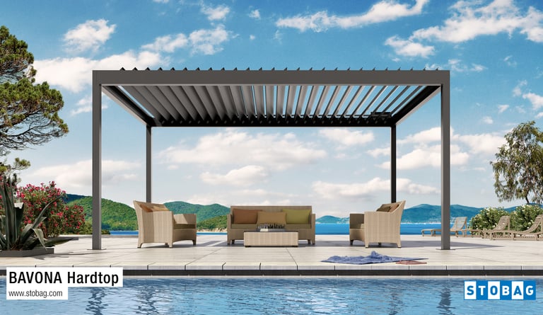 L’ombrage flexible et filigrane pour terrasse destinée aux amateurs d’air frais. Que ce soit au soleil ou sous la pluie.